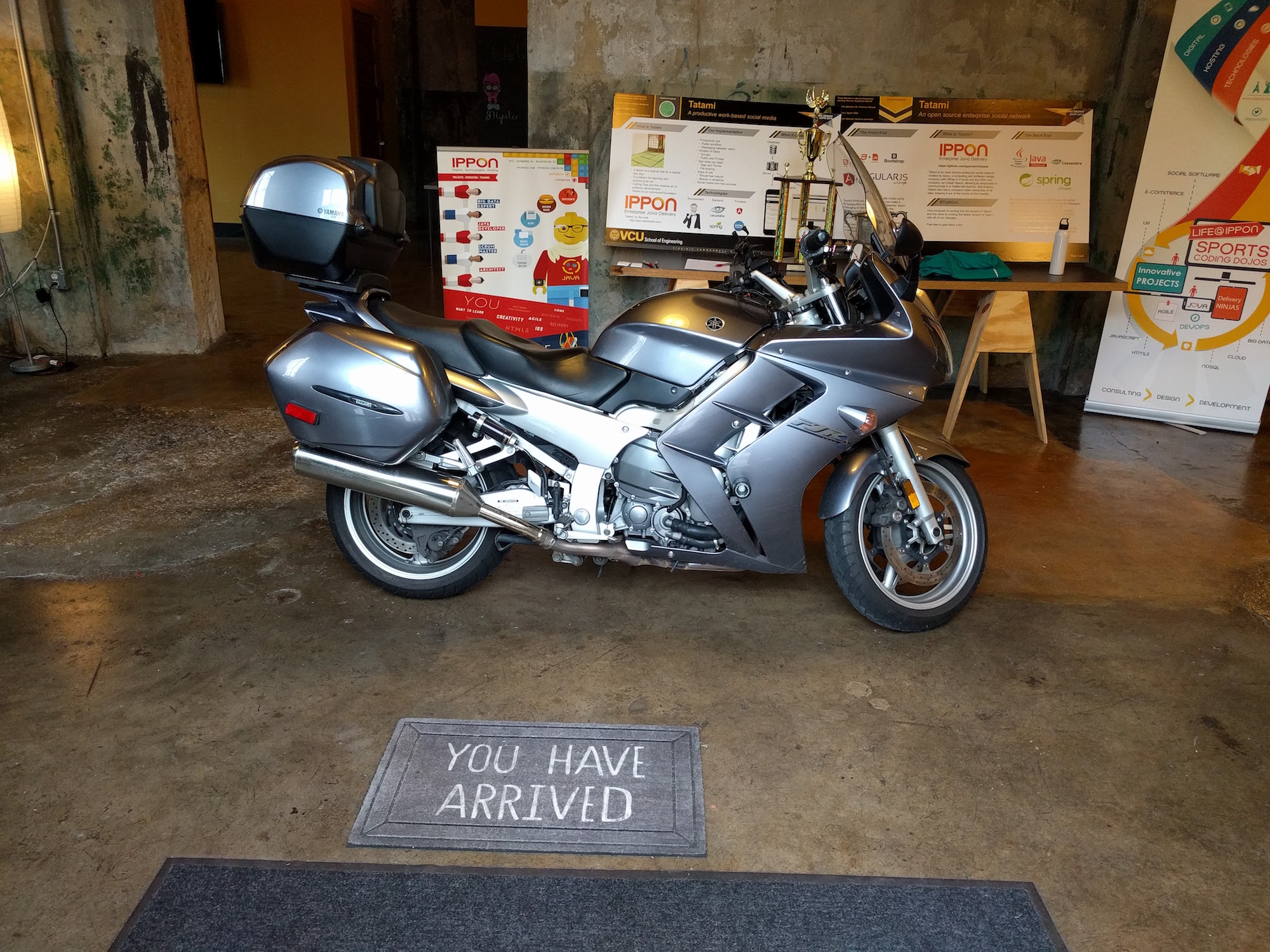 On the Road: Tough ride today. Overcast and high winds made the 300 mile journey from Charlotte, NC to Richmond, VA challenging. It was well worth, it though! Great bunch of people at Ippon USA and RJUG. I even got to ride my bike right into their offices!